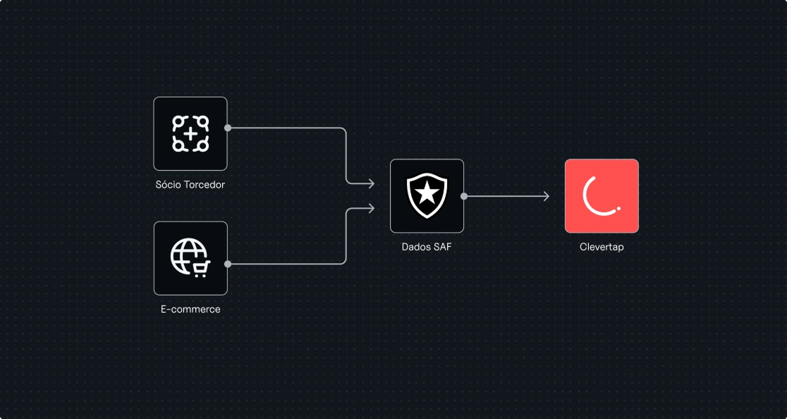 Integrar a CleverTap ao ecossistema da S.A.F. Botafogo conectando e-commerce, sócio-torcedor, ingressos e consumo nos estádios. A estrutura precisava consolidar dados em tempo real, garantindo rastreabilidade e consistência à operação. - Fragmentação da experiência do torcedor