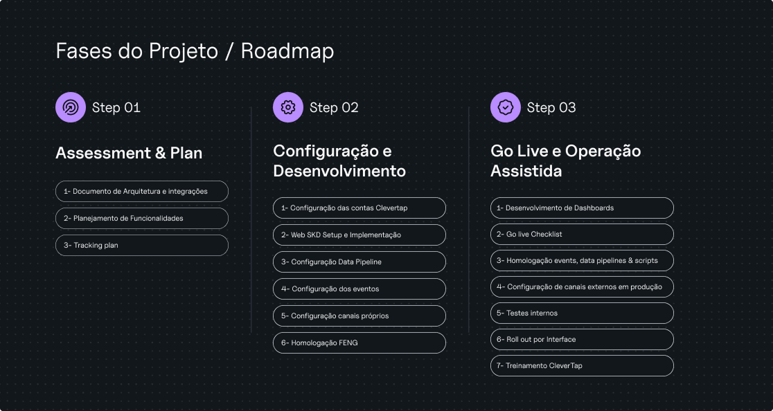 Antes da ativação, foi realizado um checklist técnico completo para validar integrações, ingestão de dados, canais de comunicação e módulos de rastreamento. O rollout foi conduzido de forma faseada, garantindo estabilidade e permitindo ajustes rápidos durante a implantação.